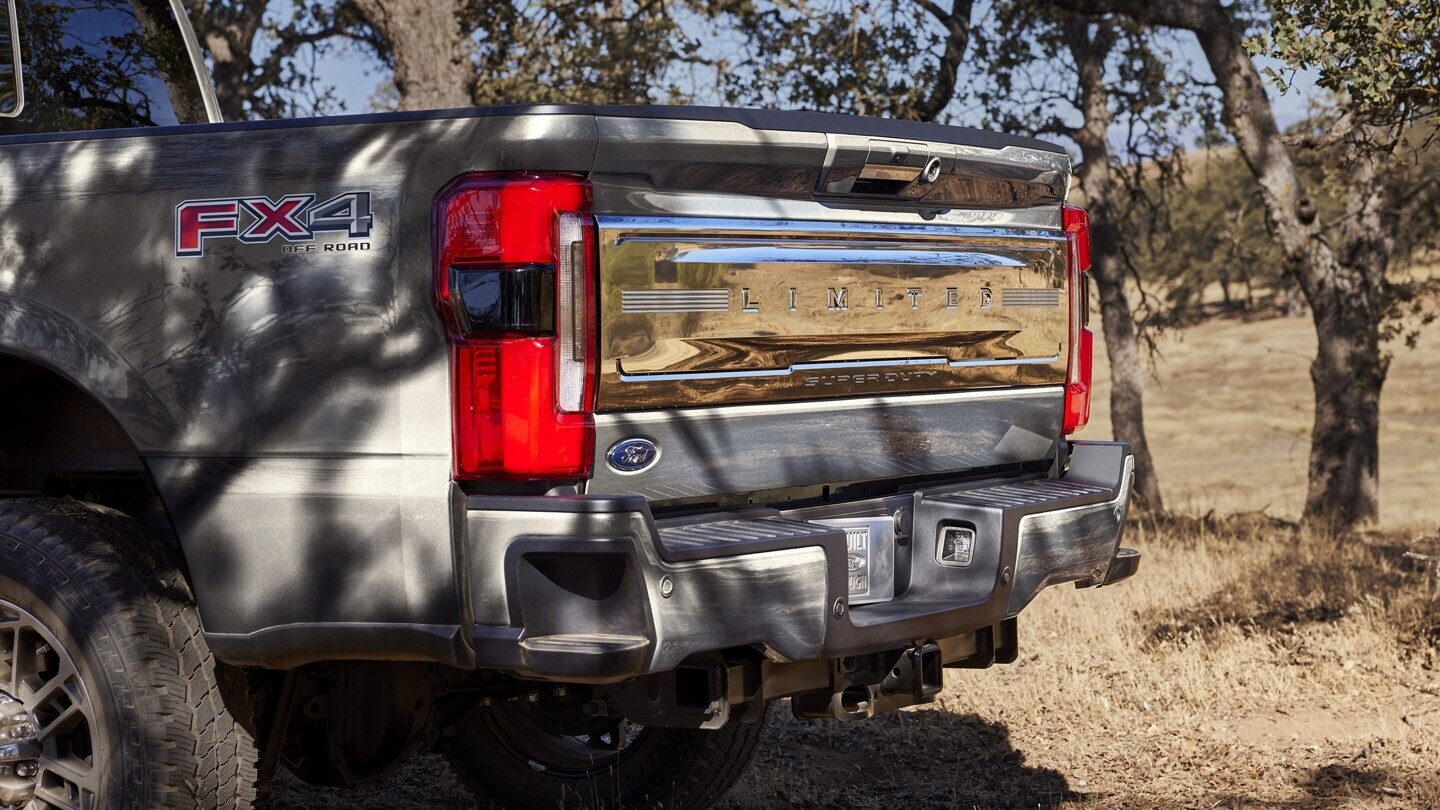 Bold design is present in Super Duty® trucks whether they're coming or going. Wrap-around taillamps inset into the cargo box and a stylish tailgate complement its overall fit and finish.