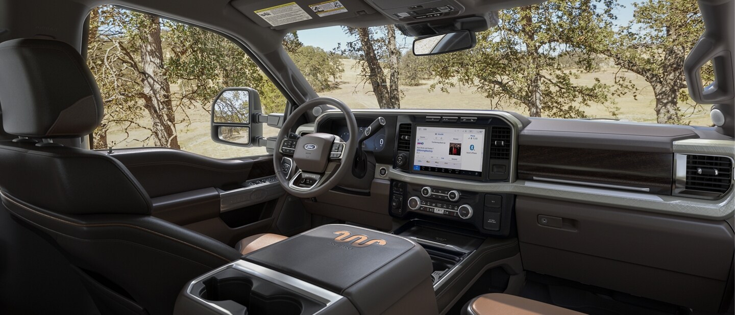 Whether it's work or recreation, the 2024 Super Duty® delivers immense comfort and thoughtfully crafted details that go beyond its rugged demeanor. With available deluxe features that include leather seating, premium sound system, stylish appliques and charging outlets throughout.
