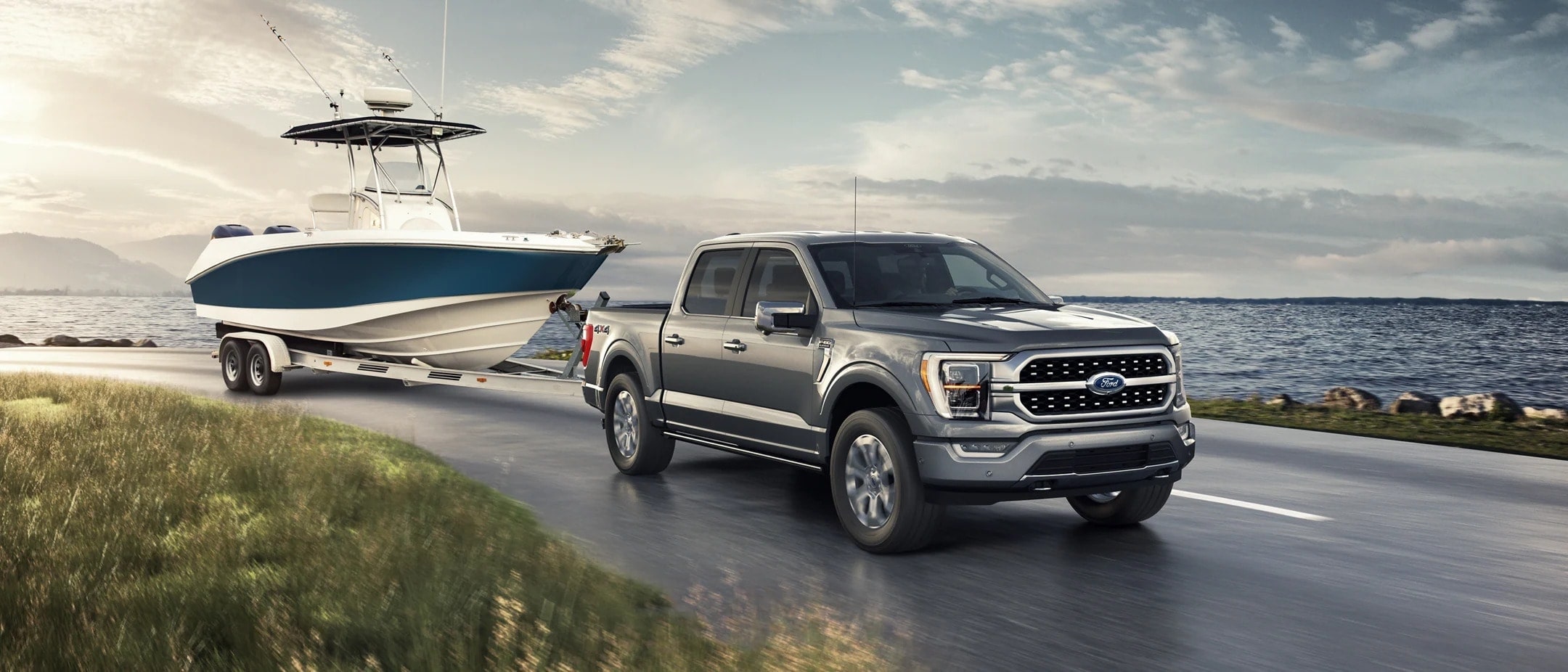 *Max towing on F-150® SuperCrew PowerBoost 4x2 with Max Trailer Tow Pkg. Not shown. F-150® Limited PowerBoost 4x4 shown. Max towing varies based on cargo, vehicle configuration, accessories and number of passengers. Towing, horsepower and torque are independent attributes and may not be achieved simultaneously.